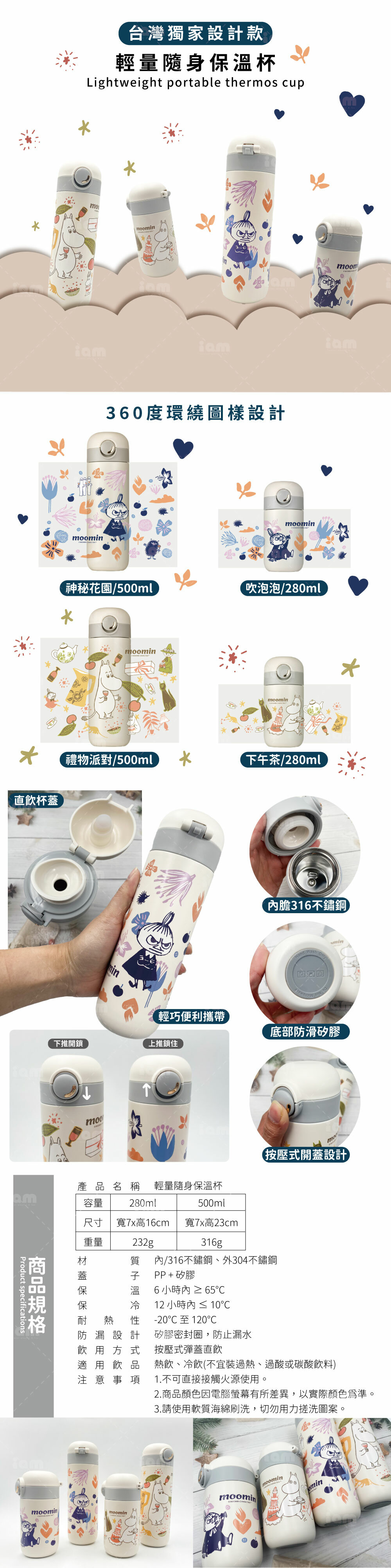 ✔ 可愛印花設計:精緻 MOOMIN角色插畫,讓每一次飲水都充滿童趣與幸福感!