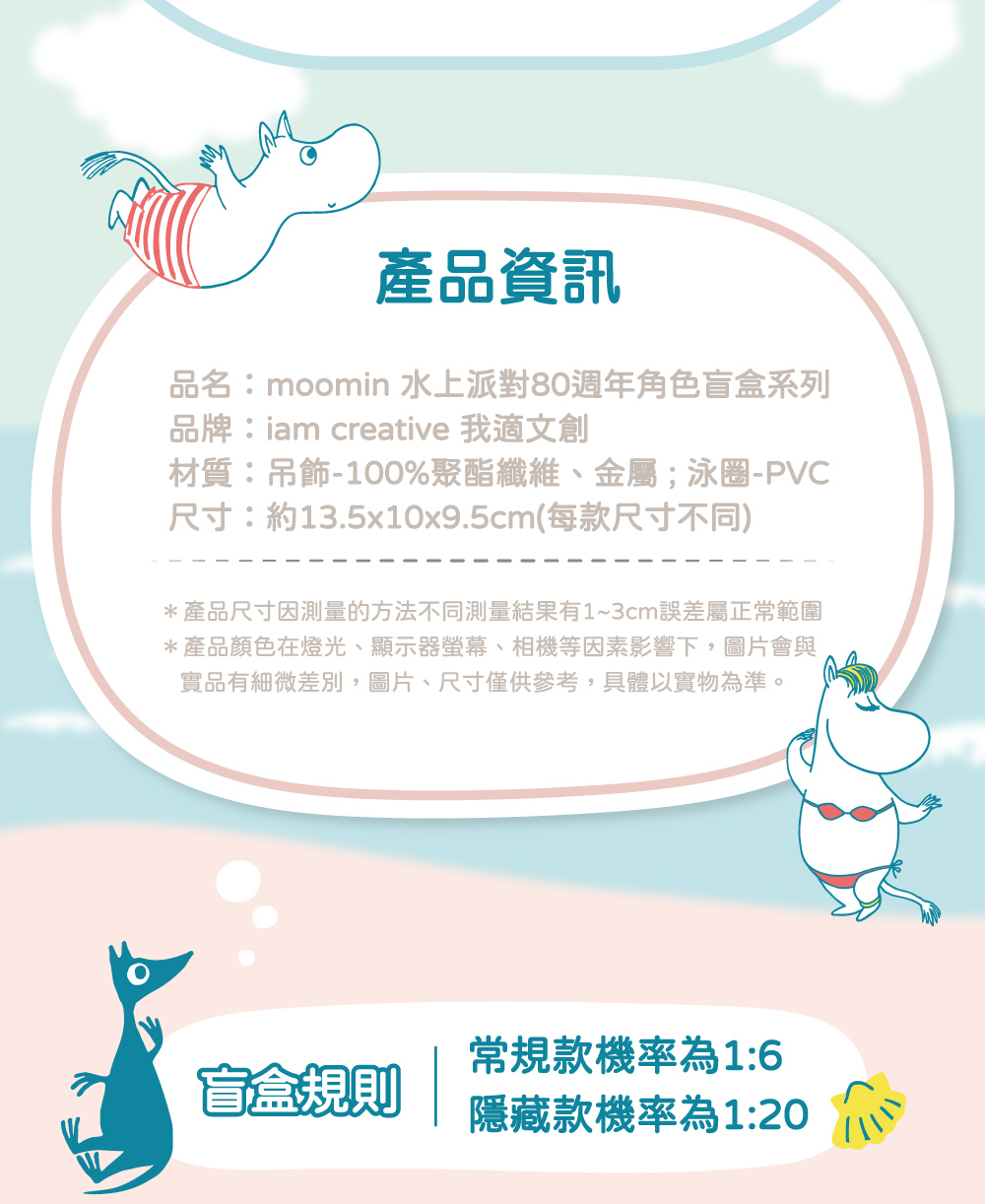 🔸6+1 款設計:包含姆明家族與好友,共 6 款常規 + 1 款隱藏款。